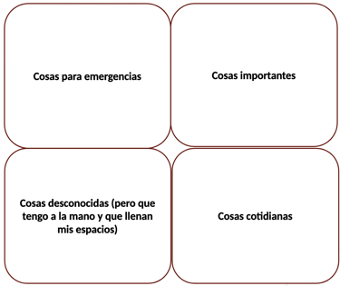 Copia la matriz en tu hoja de papel y anota en cada cuadrante donde pones tus cosas